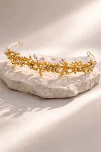 Tiara delicada e elegante, em prata 925 banhada a ouro pensada para iluminar o penteado da noiva com um toque de brilho e sofisticação. Uma peça intemporal criada para realçar a beleza natural da noiva e tornar ainda mais especial um dos dias mais memoráveis da sua vida.